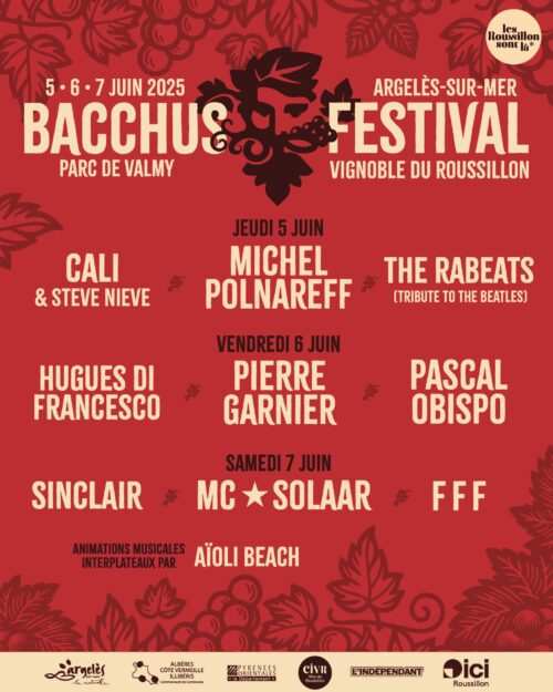 Le BACCHUS festival porte bien son nom, vous y retrouverez 22 producteurs de vins du Roussillon réunis sur un village dédié, ainsi que de nombreux petits plats régionaux.