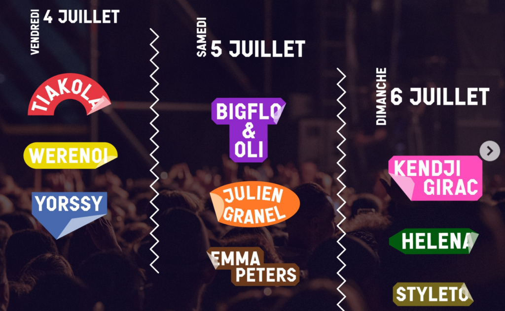 Le samedi 5 juillet s’annonce comme une journée phare, avec des artistes incontournables. Bigflo & Oli, le duo toulousain au succès immense, seront présents pour offrir un show énergique et touchant, où leurs célèbres tubes se mêleront à des moments d’émotion pure. Le public pourra aussi découvrir Julien Granel, dont l’univers pop électro, à la fois léger et profond, séduira les amateurs de mélodies envoûtantes. Enfin, Emma Peters, l’une des voix montantes de la scène pop française, clôturera cette soirée avec ses compositions personnelles et sa voix émotive, promettant une performance pleine de sensibilité.