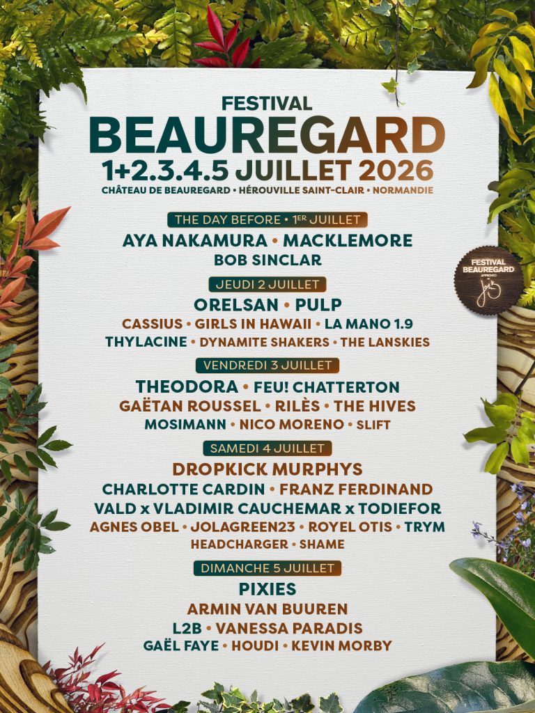 Du 1ᵉʳ au 5 juillet, le parc verdoyant d’Hérouville-Saint-Clair accueillera une programmation dense, éclectique et furieusement vivante : têtes d’affiche internationales, icônes françaises, électro jusqu’au bout de la nuit et pépites venues retourner les scènes du festival. Beauregard 2026 promet d’être une véritable fête, accessible, vibrante et fédératrice — un rendez-vous musical incontournable du début d’été.
